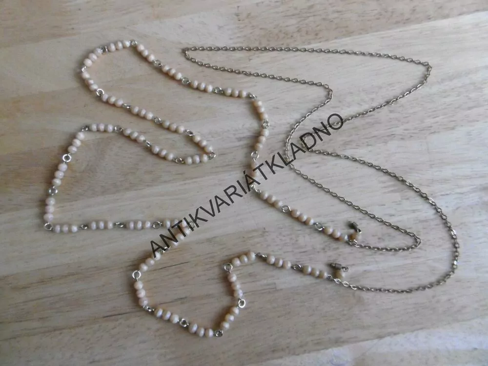 - DVOJITÝ NAHRDELNÍK S KORÁLKY NA KRK, ŠPERK, NÁHRDELNÍK, KOMPLETNÍ, STARÉ, RETRO