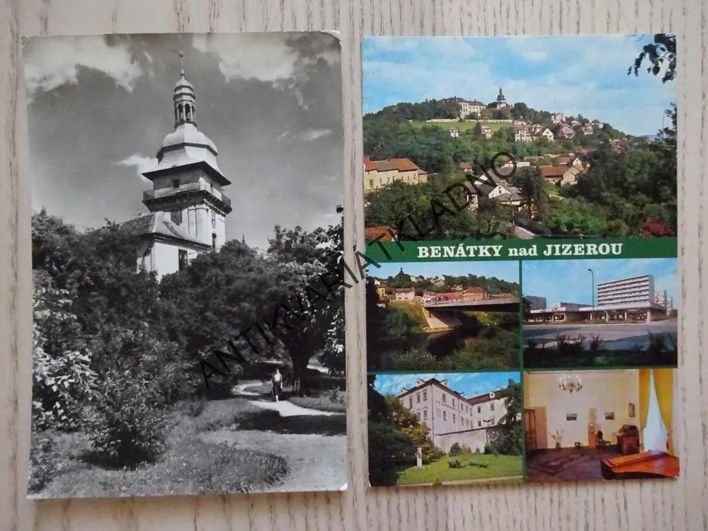 - BENÁTKY NAD JIZEROU, ZÁMEK, NOVÝ MOST PŘES JIZERU, CELKOVÝ POHLED, PAMĚTNÍ SÍŇ BEDŘICHA SMETANY, OKRES MLADÁ BOLESLAV, 2 KUSY